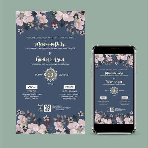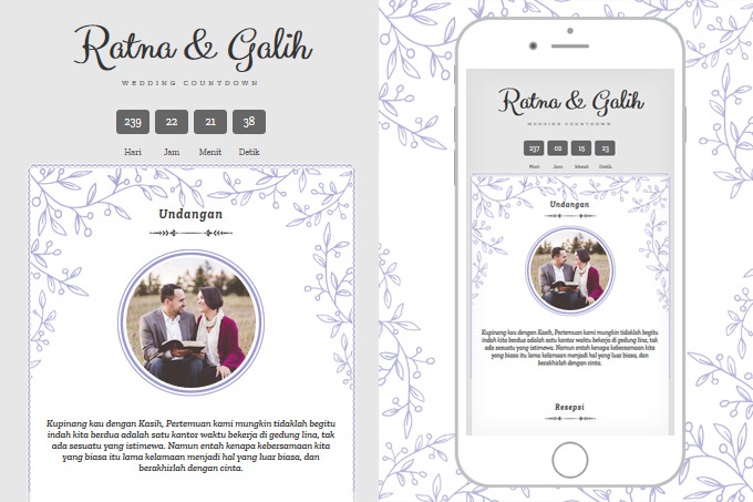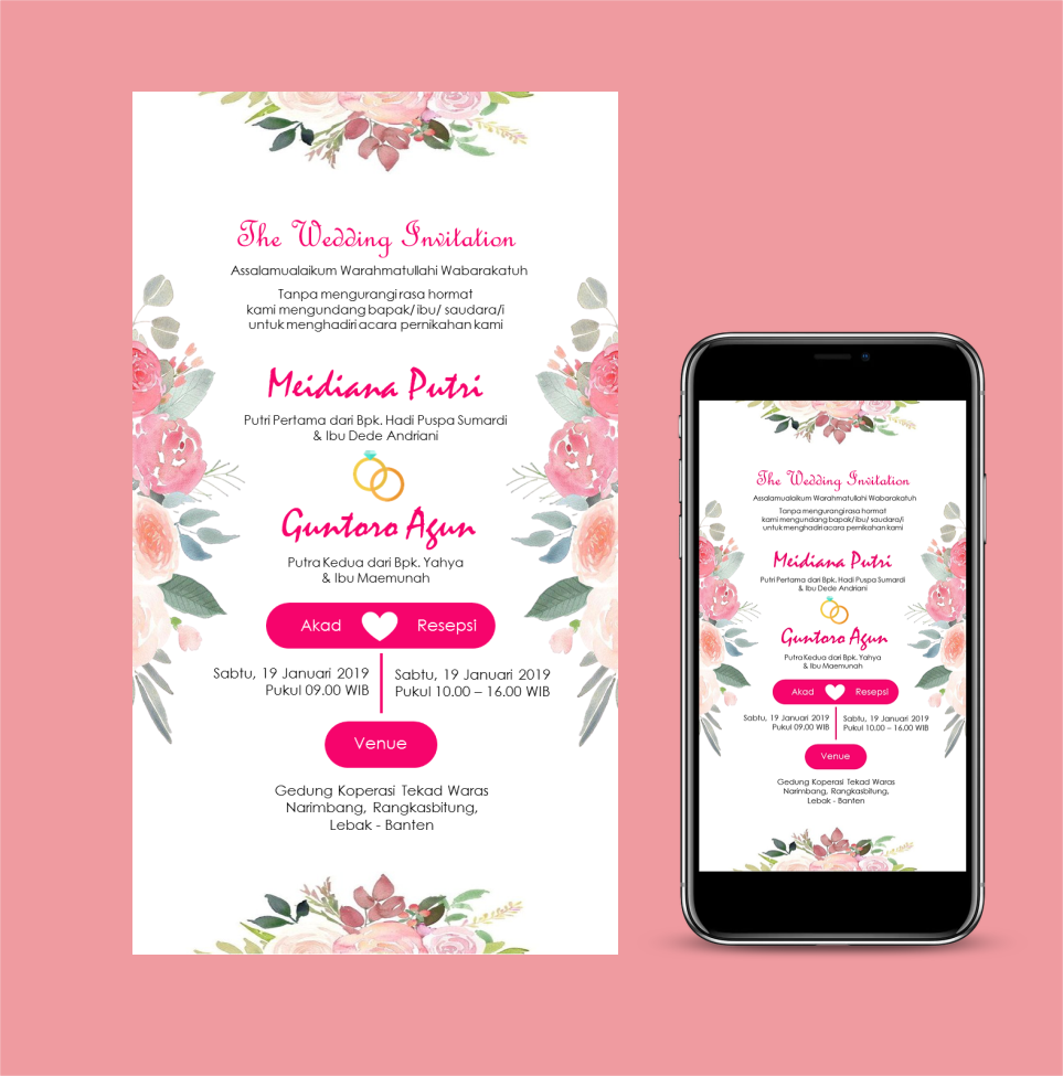 E-invitation berisi informasi lengkap acara pernikahan kamu yang akan ditampilkan dengan ringkas dan berkelas.